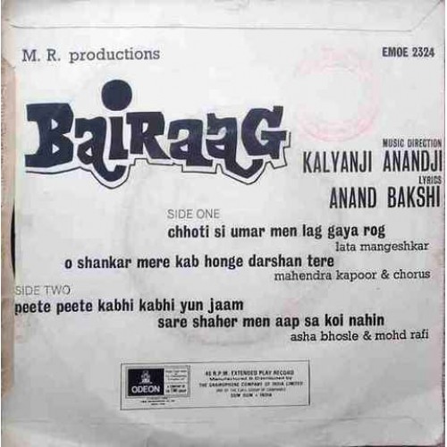 Bairaag EMOE 2324 Bollywood EP Vinyl Record