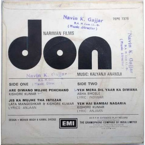 Don 7EPE 7375 Bollywood Movie EP Vinyl Record