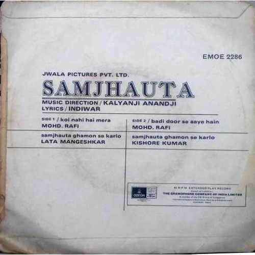 Samjhauta EMOE 2286 Bollywood EP Vinyl Record